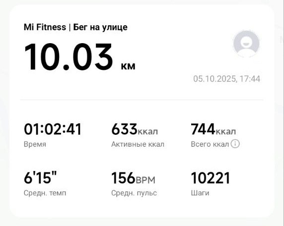 №824986 Ответов: 4 05 Октября, 2025 13:29 Ответы:>>825000 Быстрый ответ>>812832 Пробежал 10 км без остановок. Состояние отличное.