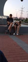 Сижу щаз у фонтанчика, напротив меня парочка состоящая из сыча и игривой тянки.
