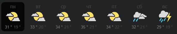 На прошлой неделе было +35 где-то