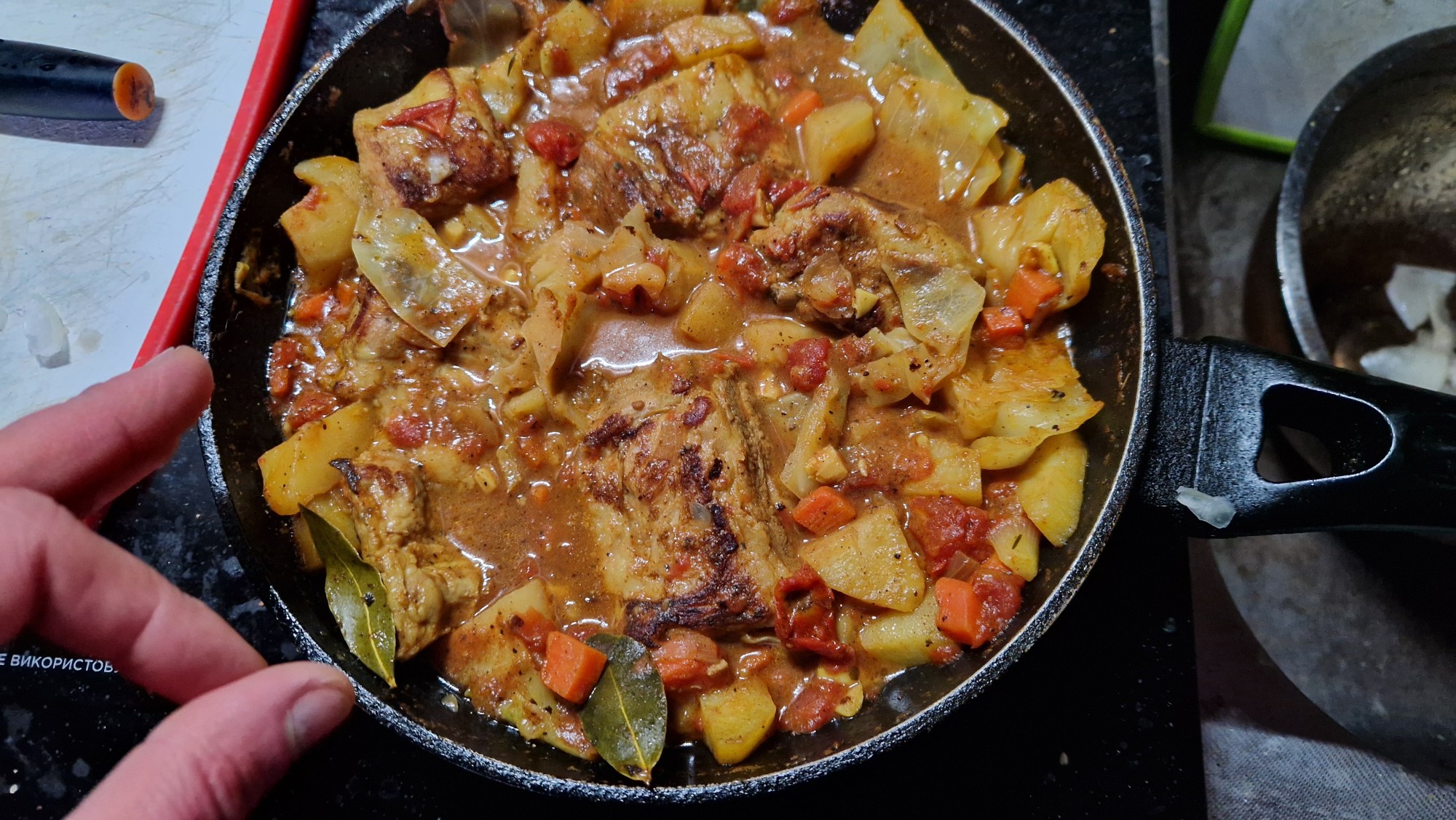 Жаркое пожарил целую сковородку, ганденчикам такого не отведать. Да и сковорода Крауф немецкая а не российская хуйзинцяо.