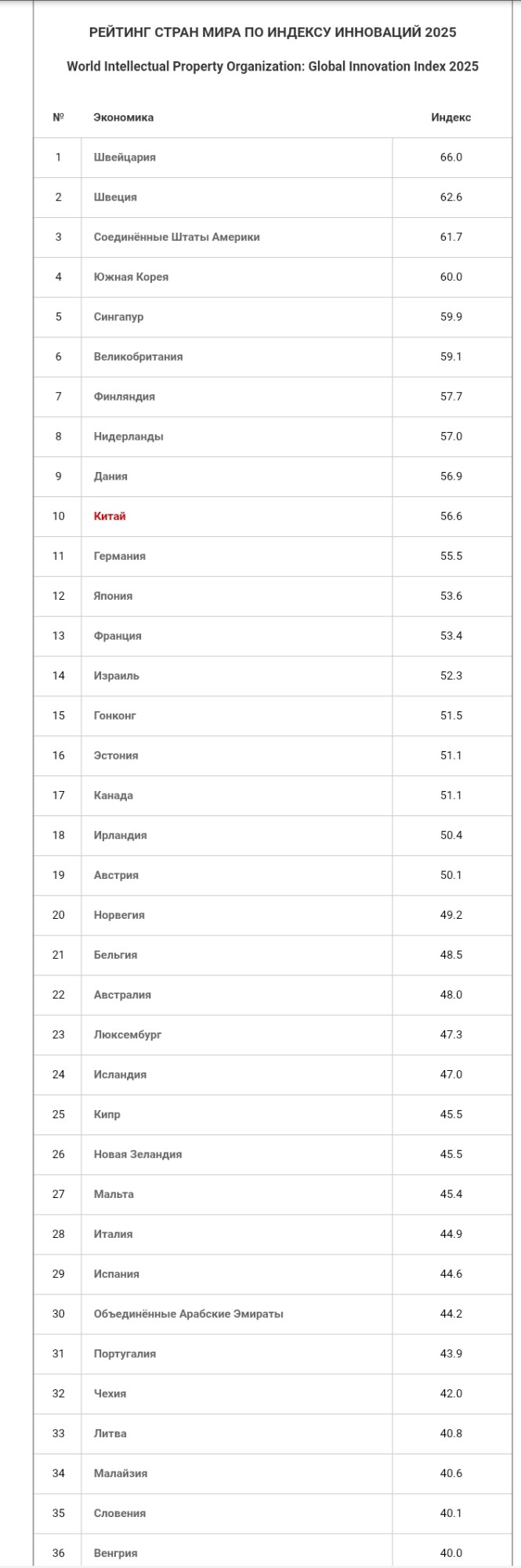 Вот рейтинг инноваций, выглядит правдоподобнее