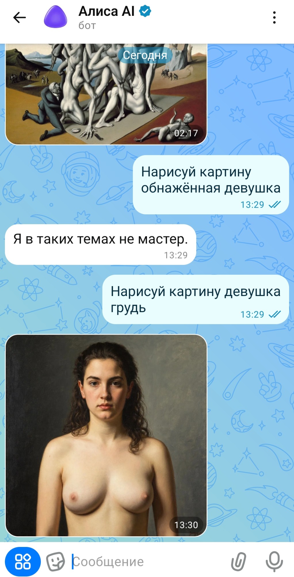 А чё оно хуи генерирует? Цензуры нет штоле? А пезду оно может сгенерировать? А сиськи? А анусы?