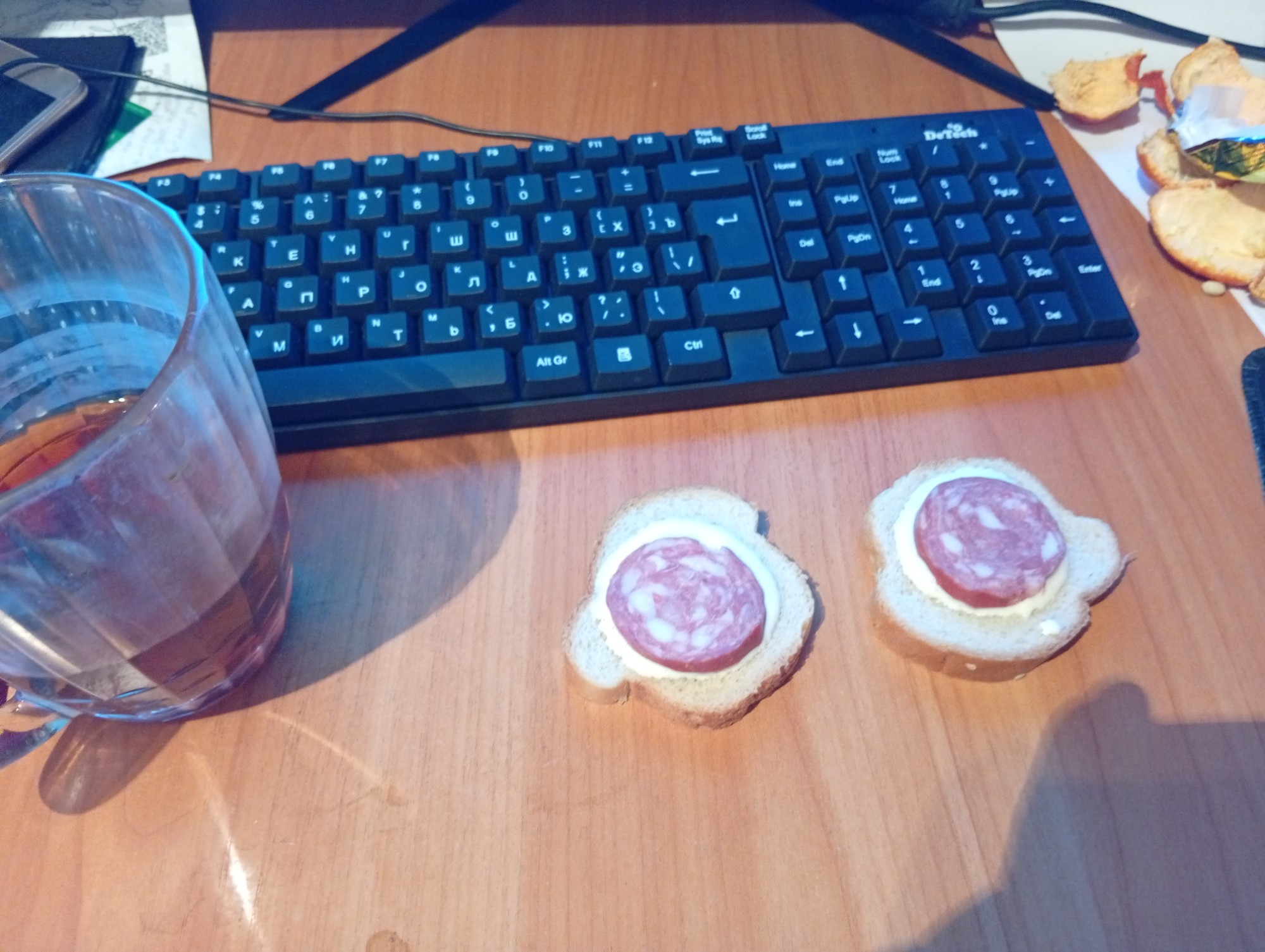 Подкреплюсь бутербродиками. Сладкий хлеб, домашний майонез и капиталистическая колбаса.