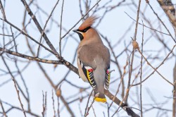 Кто это? Свиристель? Ко мне такие прилетали до морозов, рябину всю объели.