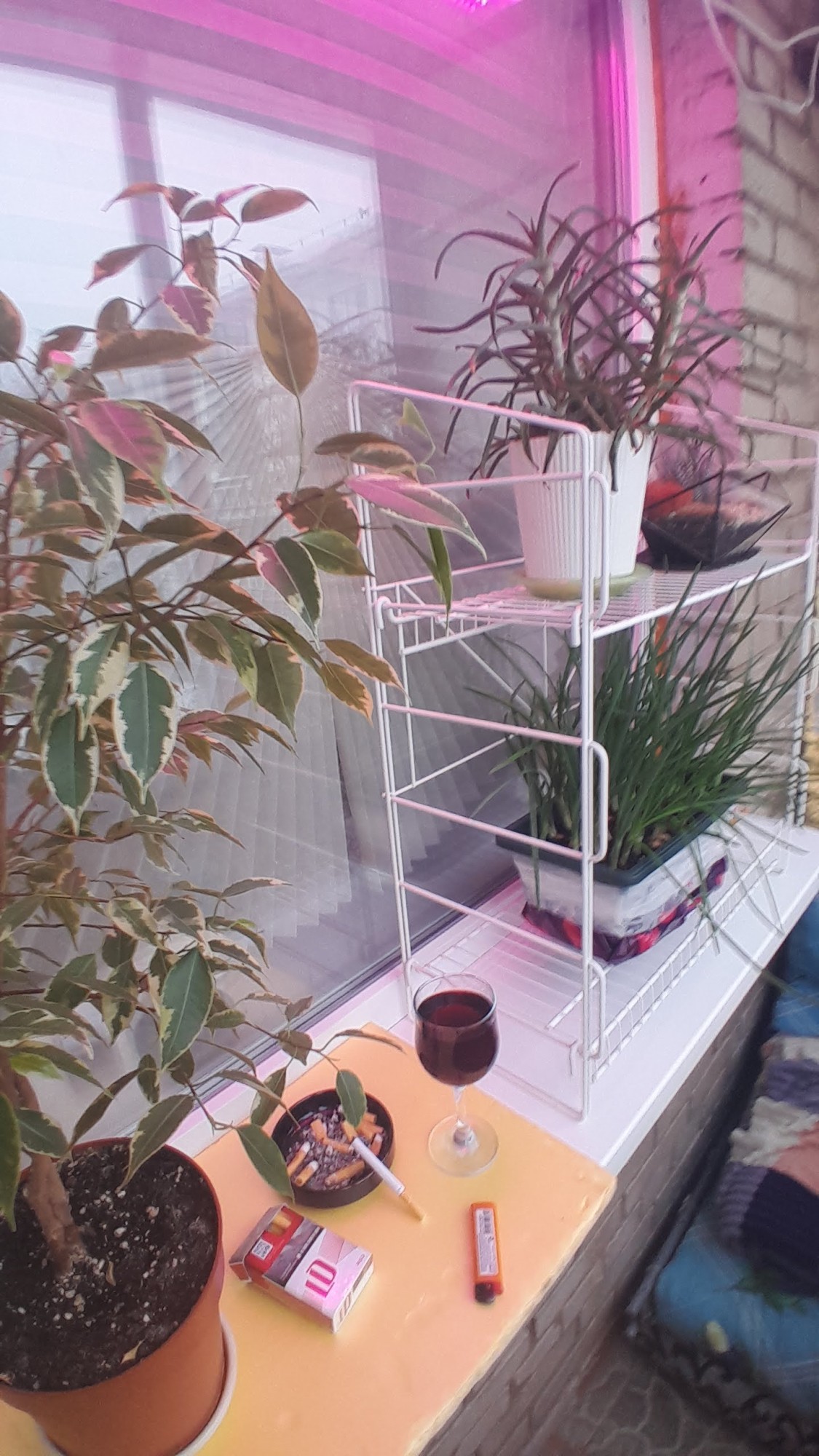 Купил стеллажик, чтобы лукам веселее рослось на балконе