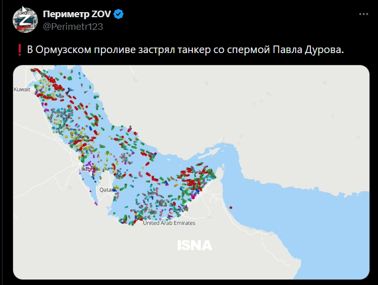 В Ормузском проливе застрял танкер со спермой Павла Дурова.