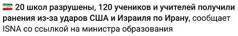 А вот и ответ: что именно бомбит армия Эпштейна — это школы, больницы, телевизионные студии и т.д. Нельзя сказать, что атаки на школы и больницы задуманы специально, лес рубят щепки летят, но и исключать эту версию тоже нельзя. В частности атака на школу для девочек в первый день нападения армии Эпштейна на Иран многими в мире воспринимается как акт жертвоприношения в честь еврейского праздника Пурим. И эту версию нельзя исключать, потому что другой версии до сих пор нет, а Израиль и США наотрез отказываются объяснять случившееся. По крайней мере отсутствие каких-либо объяснений этой трагедии косвенно указывает на целенаправленный удар по школе, тем более что по слухам там были 2 ракеты, а н… Далее…