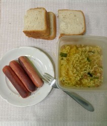 пожарил оставшиеся сосиски, и запарил куриный дошик, вместо чая запил бульоном