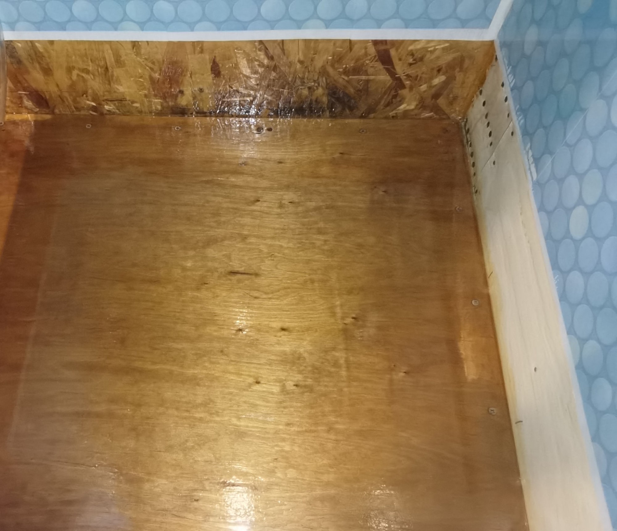 Сказано - сделано. Буквально только что покрыл вторым слоем фанерку под кабинкой. До завтра подсохнет - и задвину поддон обратно. Потихоньку набираюсь опыта в покраске лаком.