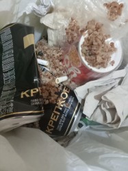 зацените парашу, пил крепкое ссаньё пиво, выбросил позавчерашнюю гречу, и окурки есть