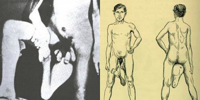 Хуан Батиста дос Сантос родился в Португалии примерно в 1843-м году в семье здоровых родителей, имевших ещё двое совершенно нормальных детей. У Хуана было два пениса и три мошонки, причём «крайние» мошонки содержали по одному функционирующему яичку, а «центральная» — два, но они подтянулись в брюшную полость, когда мальчику было 10 лет. Также от лобка Хуана свешивался вниз ещё один довольно странный орган: две дополнительных ноги, сросшихся в одну (но с двумя ступнями). Орган имел коленную чашечку и лишний задний проход. В общем, Хуан Батиста дос Сантос носил на себе целую кучу дополнительных органов. В медицинском отчёте, написанном, когда юноше было 22 года, указывалось, что Хуан обладал п… Далее…
