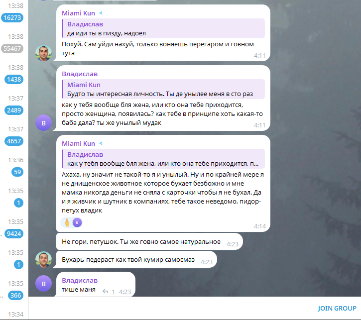 >>856525 весело там у них, пиздец владика бомбит, Маями-Кун его разъебывает знатно, как щенка подзаборного