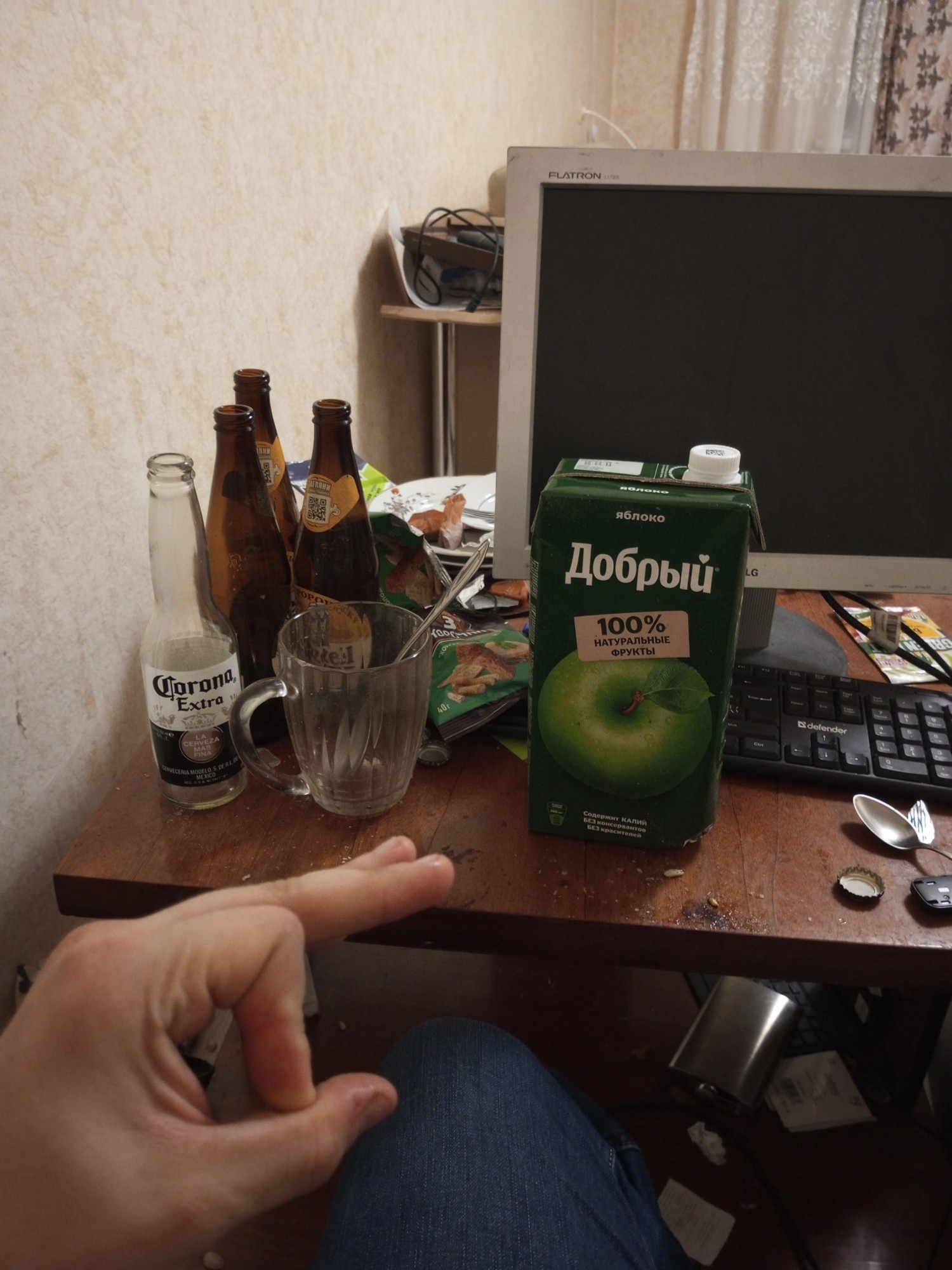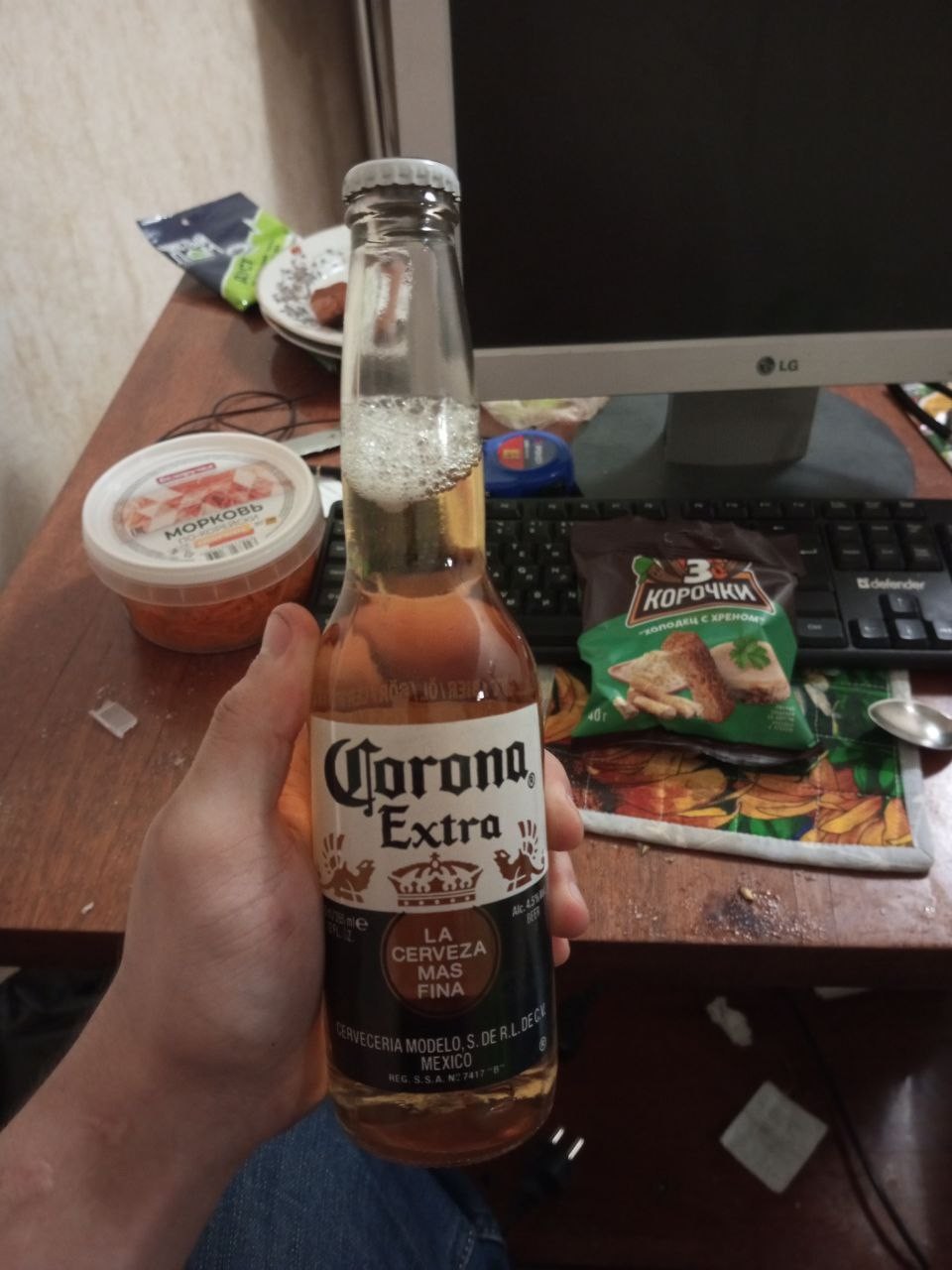 Ганденчику не попить яблочного сока. А корона, кстати, вкусное пиво, но челяборазу такого не отведать, ведь оно стоит 130 руб за 0,35 бутылку.