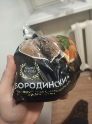 Гандораз показывал как ест какой-то бородинский хлеб. Я хотел ржаной купить, но вот взял бородинский, производитель ИП акопян какой-то. На вкус какой-то странный бля, мне не особо зашëл.