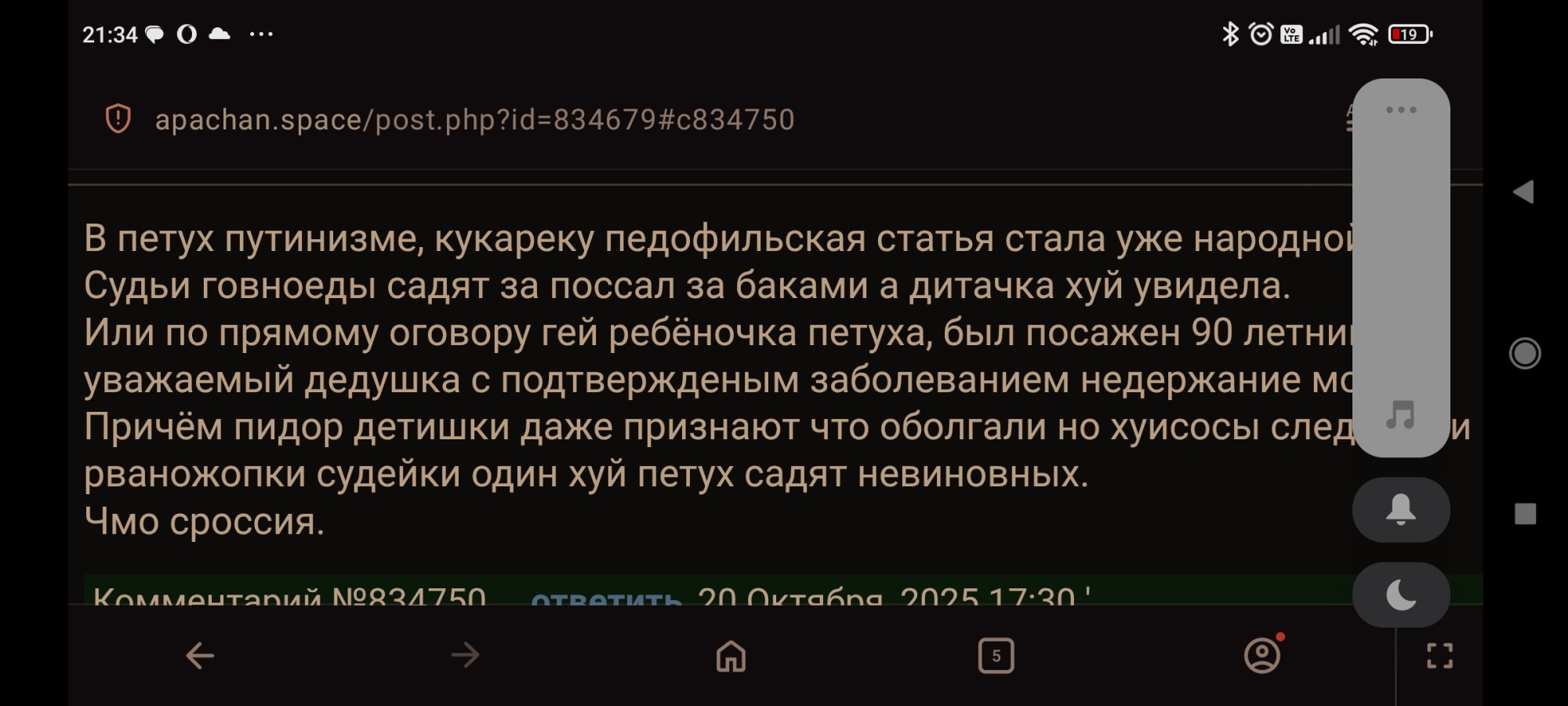Вижу ночами на параше всегда сидит один и тот же черт с однотипным стилем поведения. В основном читает высеры других, сам мало пишет, очень пуглив. Спрашивается, зачем сидишь, займись личной жизнью, долбоеб. Есть большая вероятность, что это будка на смене. Пишет только тогда, когда можно затеряться на фоне других анонов. Если никто не пишит, то долбоеб тоже не пишет, сидит выжидает, боится быть обнаруженным.