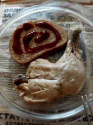 Отварная курочка очень сытная и полезная плюс хлеб фёдоровский йодированный с отрубями и кетчупом