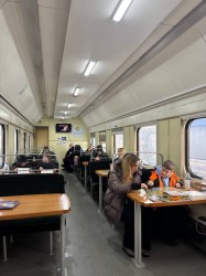 В вагонах можно согреться, зарядить гаджеты, подключиться к Starlink, выпить бесплатный чай и провести последние часы своей жизни с детьми, потому как возле вагонов дежурят регулярные патрули людоловов и полицаев