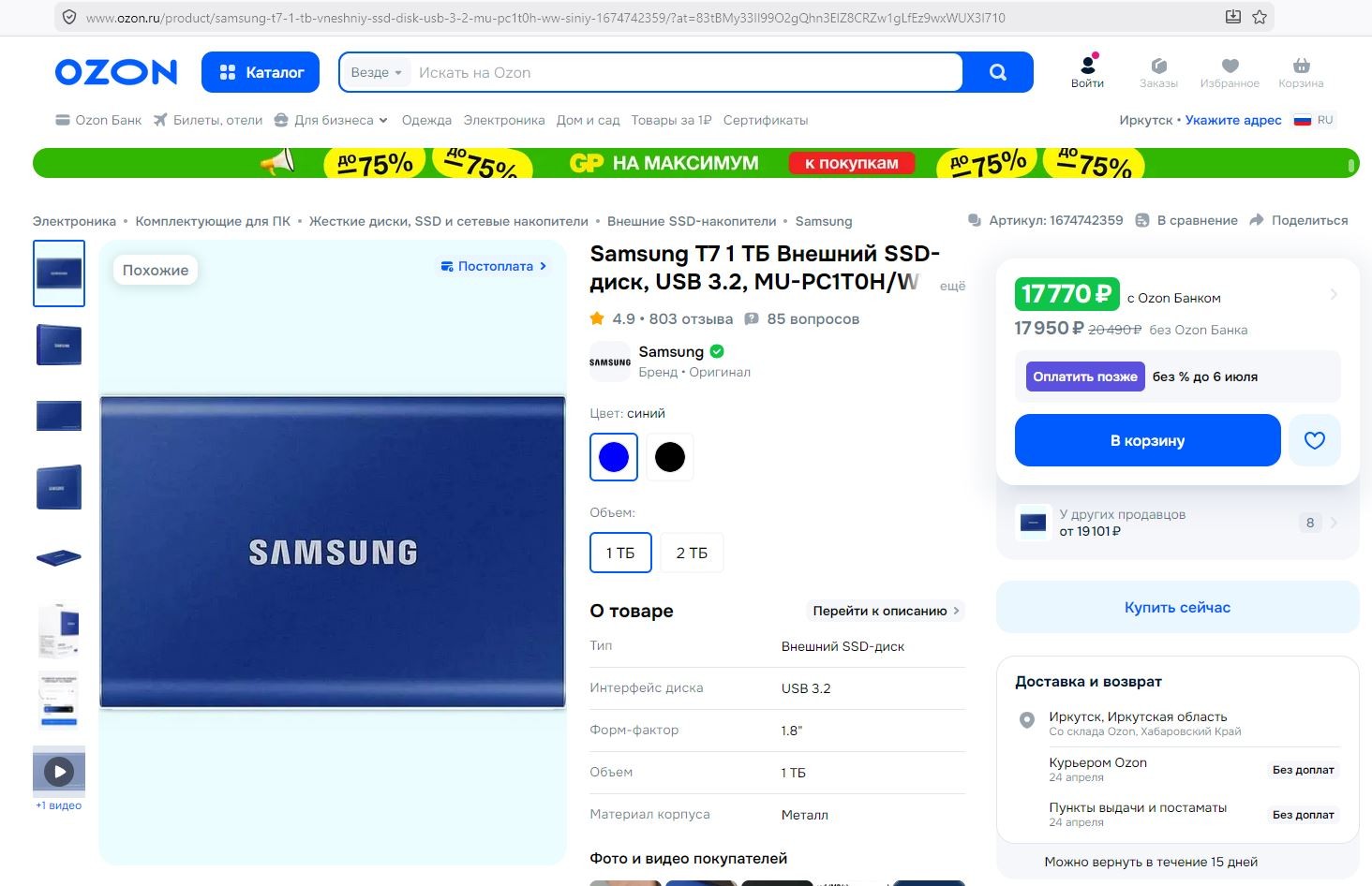 >>945662 Ебать они пизданулись нахуй, только что глянул цены, т5 сняли с продажи есть т7 который стоил на 500 грн дороже, 8к цена, хотя по логике столько должен стоить на 4 тб, совсем ебнулись