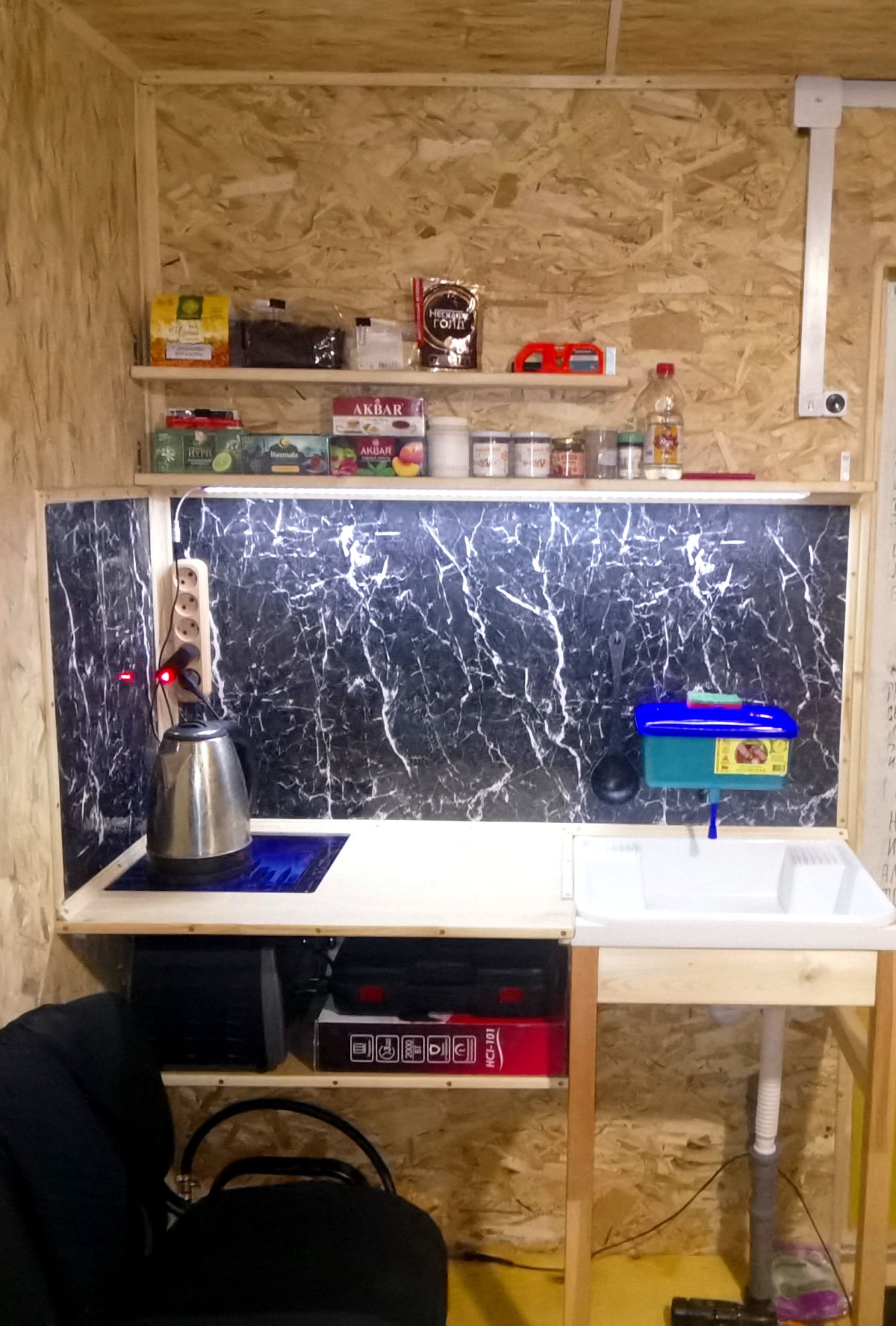 Модернизация кухни происходит в прежнем режиме. Идёт потихонечку обустройство. Куплена лед-подсветочка. Блочок подошёл от шуруповерта - даже ничего паять не пришлось.