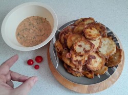 >>764920 Соус. Сметана, зелень, помидор.