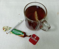 чай Акбар, конфетка Ореховая страна, сигарета