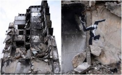 Вот работа сего выблядка. Путя разрушил, британский пидор бэнкси - завершил дело вандализмом. Никак иначе нельзя это назвать.