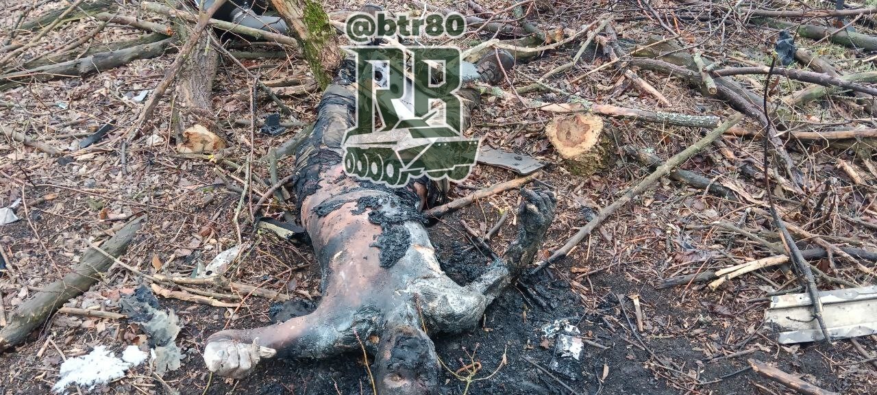 Один из тысяч навсегда безымянных чуборгов, навсегда оставшихся в Донецкой области благодаря своему командованию. Он не успел или не захотел сложить оружие и поднять копытца. Эту фотографию, которая дает шанс родственникам на опознание, сделана с квадрокоптера военнослужащим ВС РФ в районе поселка Дачное на кураховском направлении.