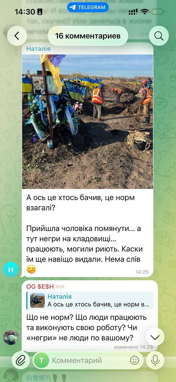 Те самые африканцы, которых собирается завозить на Украину Буданов. Уже приехали. В Черкасах женщина засняла чернокожих работников на кладбище, которые роют могилы.