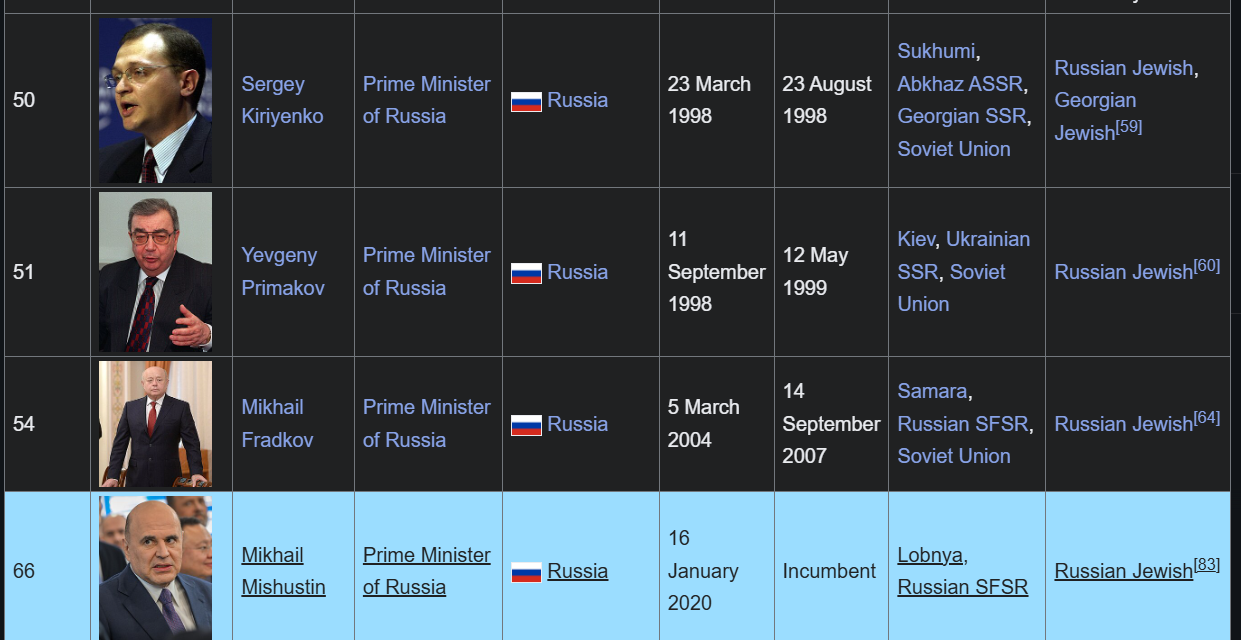 Воот так вот.... Вся верхушка. ВСЕГДА. Хазарская. Со времен Титя Урода и Володимки пидора, красивого как солнышко. ВЫ И ЕСТЬ ЕВРЕИ, дорогие мои ))))))))))))