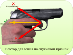Точнее не на курок, а на спусковой крючок. Настоящее оружие уже у меня было когда я работал в военизированной охране, но там если выстрелишь из него даже в воздух то надо писать целые тонны бумаг и объяснительные зачем ты это сделал. В этой мерзкой стране всё обосрано и обоссано.