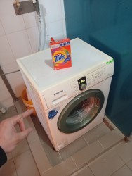 Стираю свои вещички во в стиральной машине-автомат, не платя за воду и электричество. У нищего гандораза выпал пролапс!