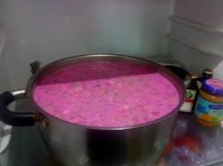 Угощает свекольником!